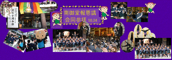 日頃とは違った「南御堂」という場所でキャラクターのブットンとハイタッチ!!