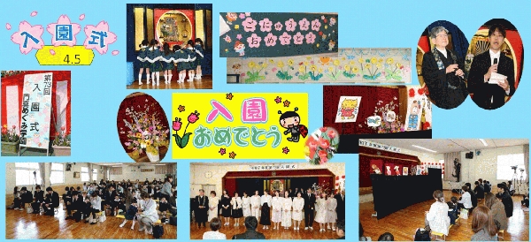 園庭には、桜をはじめチューリップ、パンジー、ネモヒラ、ストック、フリージアに囲まれ、お友だちの入園を祝ってくれています。