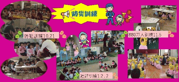 12月は「火災」を想定し、給食室から出火、おはしもての標語を守り園庭に素早く避難