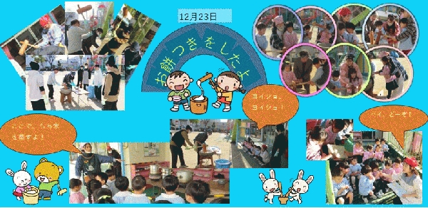 お手伝い頂いたおやじの会のみなさん、実行委員のみなんさ園児達もまた一つ、「おもちつき」を体験して心に残る一日になりました。ありがとうございました。
